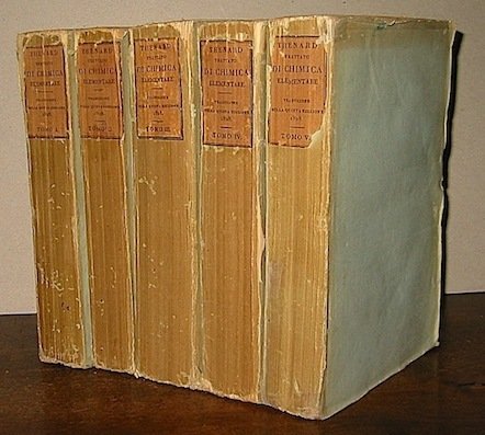 8vo (cm. 21,7), 5 Voll., IV-484, 432, 580, 526, 436 pp. Con 35 tavv. f.t. Brossure coeve con titoli su tasselli cartacei ai ds. Poche carte brunite e qualche fioritura, peraltro buon esemplare. Non comune.