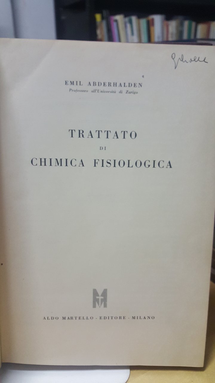 trattato di chimica fisiologica 1950. Milano, aldo martello 1950 italiano, pp.512 copertina con lievi segni di usura