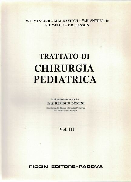 Trattato di chirurgia pediatrica III - Edizione italiana a cura del Prof. Remigio Dòmini