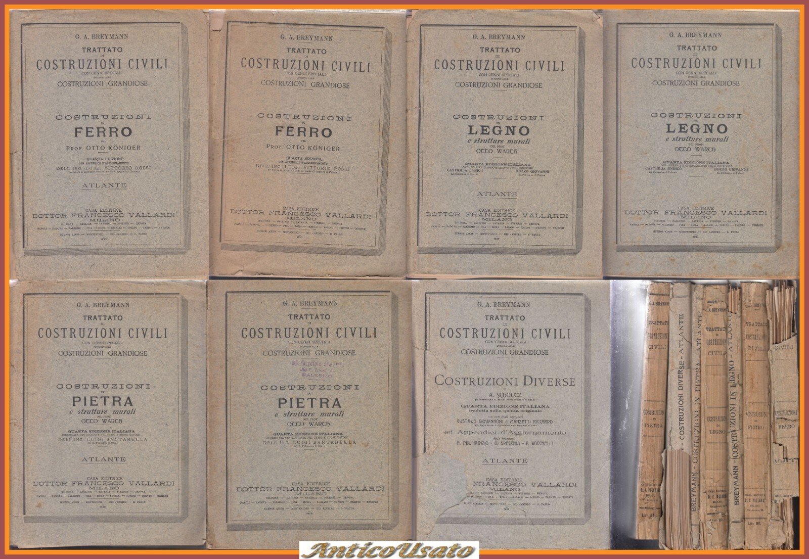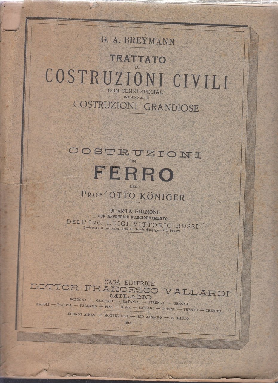 TRATTATO DI COSTRUZIONI CIVILI Breymann 7 volumi 1925 Vallardi libro ferro legno