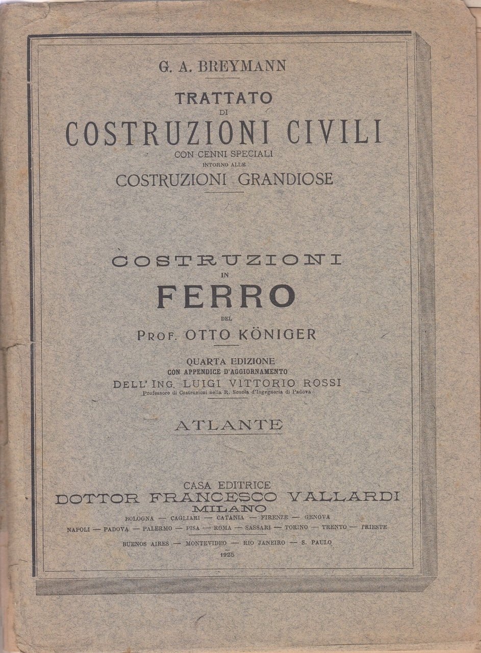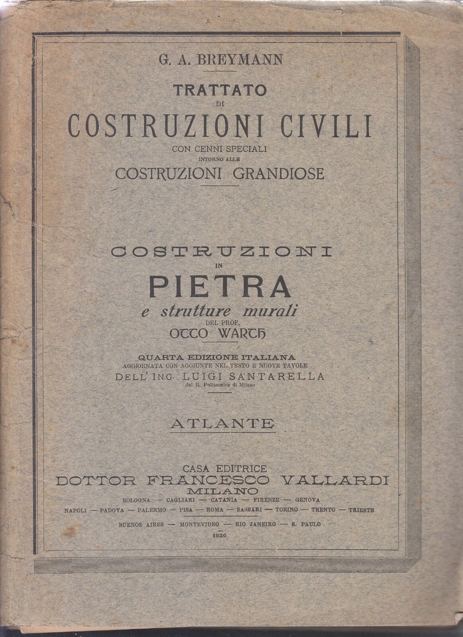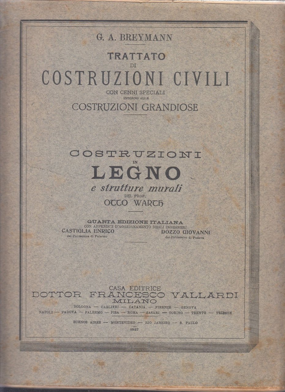 TRATTATO DI COSTRUZIONI CIVILI CON CENNI SPECIALI INTORNO ALLE COSTRUZIONI GRANDIOSE di G. A. Breymann. Opera in 7 volumi.