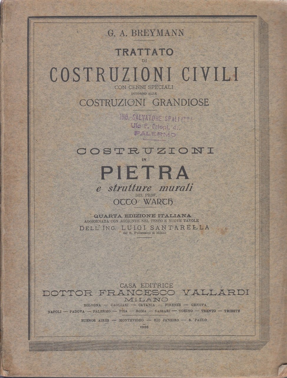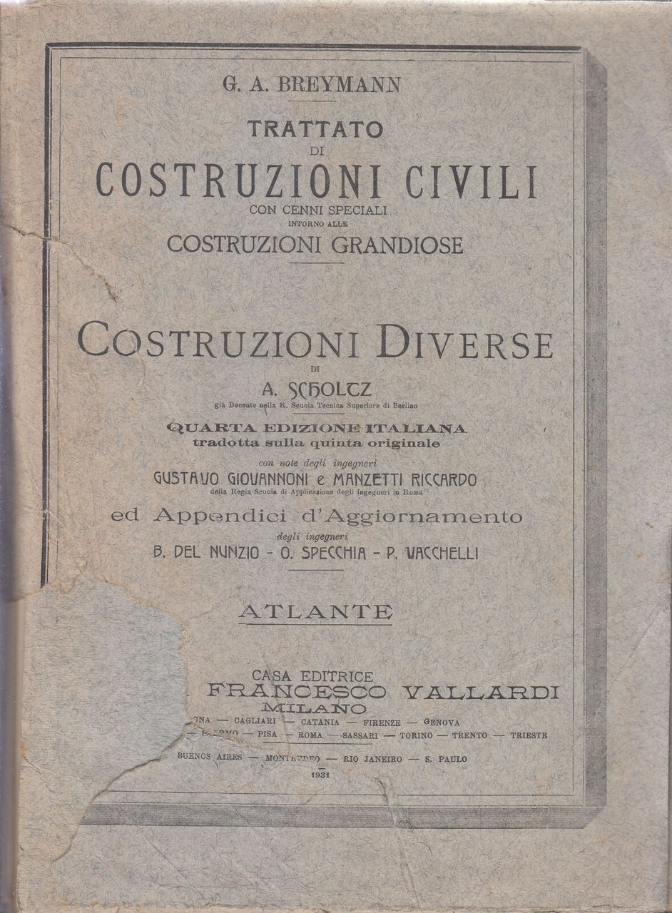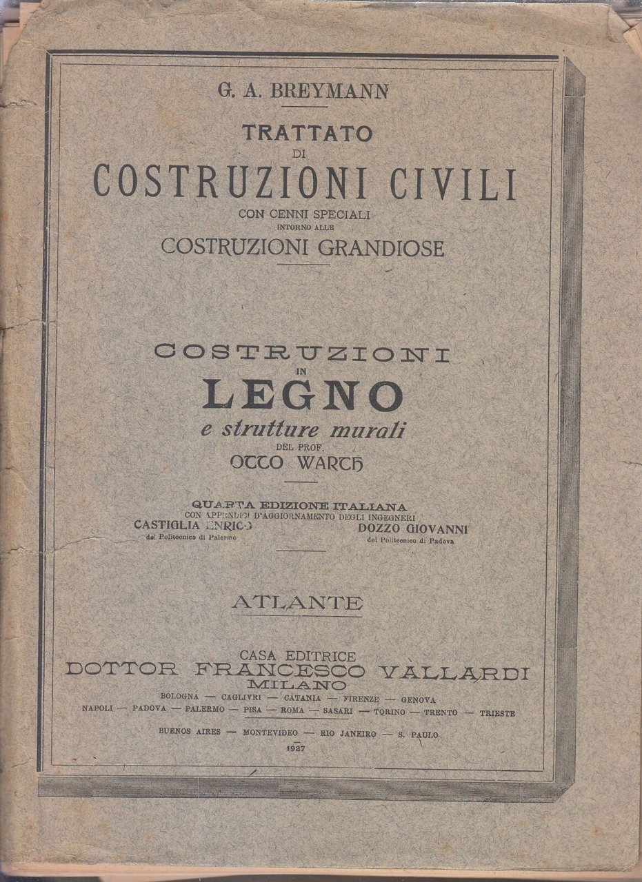 TRATTATO DI COSTRUZIONI CIVILI CON CENNI SPECIALI INTORNO ALLE COSTRUZIONI GRANDIOSE di G. A. Breymann. Opera in 7 volumi.