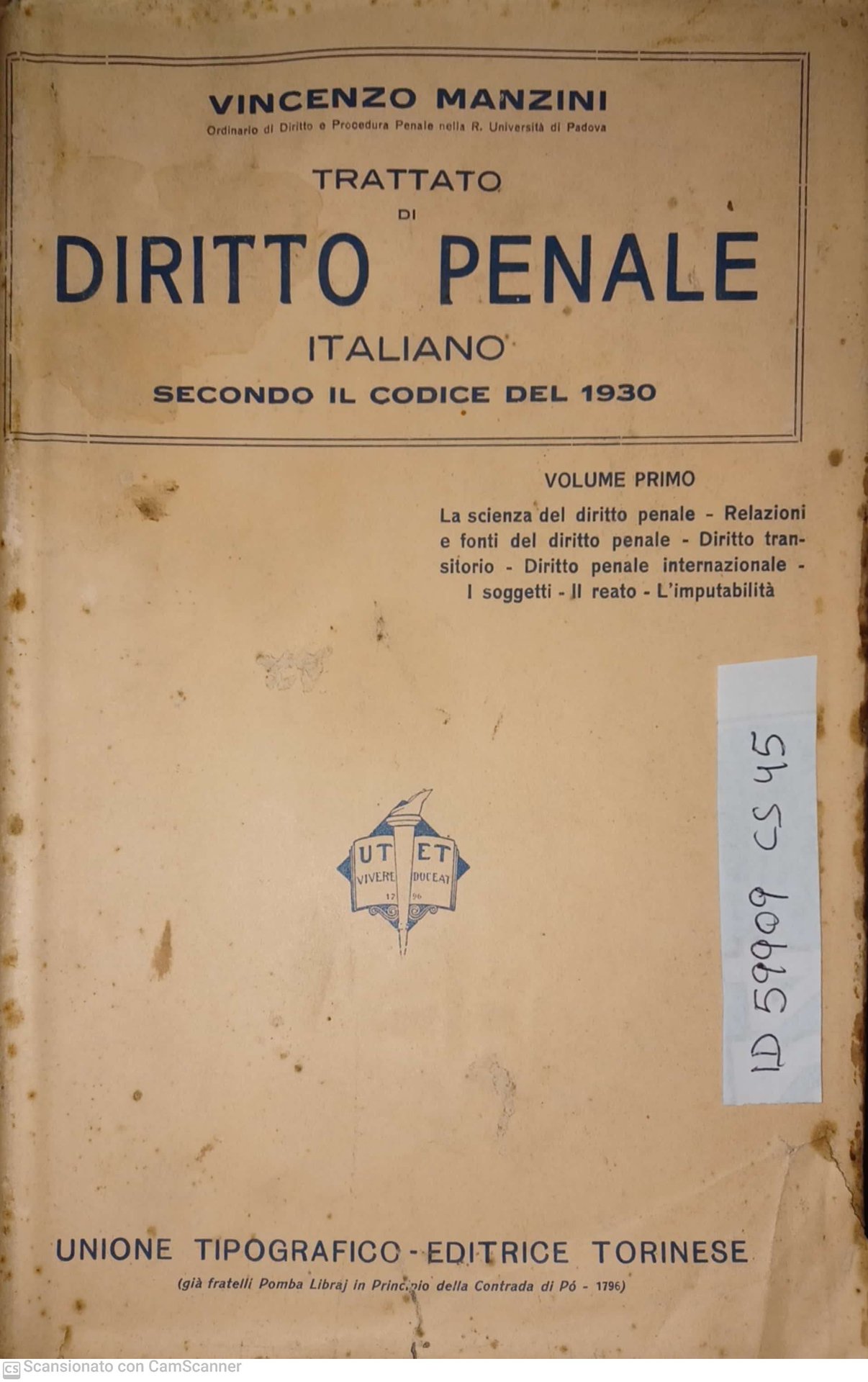 Volume primo: La scienza del diritto penale - Relazioni e fonti del diritto penale - Diritto transitorio - Diritto penale internazionale - I soggetti - Il reato - L'imputabilità - DETTAGLIO DELLE CONDIZIONI : Buono stato di conservazione, sovracoperta con segni di usura - (1.XV.2).