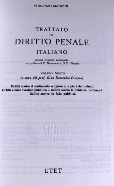 DELITTI CONTRO IL SENTIMENTO RELIGIOSO E LA PIETÀ DEI DEFUNTI DELITTI CONTRO L'ORDINE PUBBLICO DELITTI CONTRO LA PUBBLICA INCOLUMITÀ DELITTI CONTRO LA FEDE PUBBLICA VOL. 6
