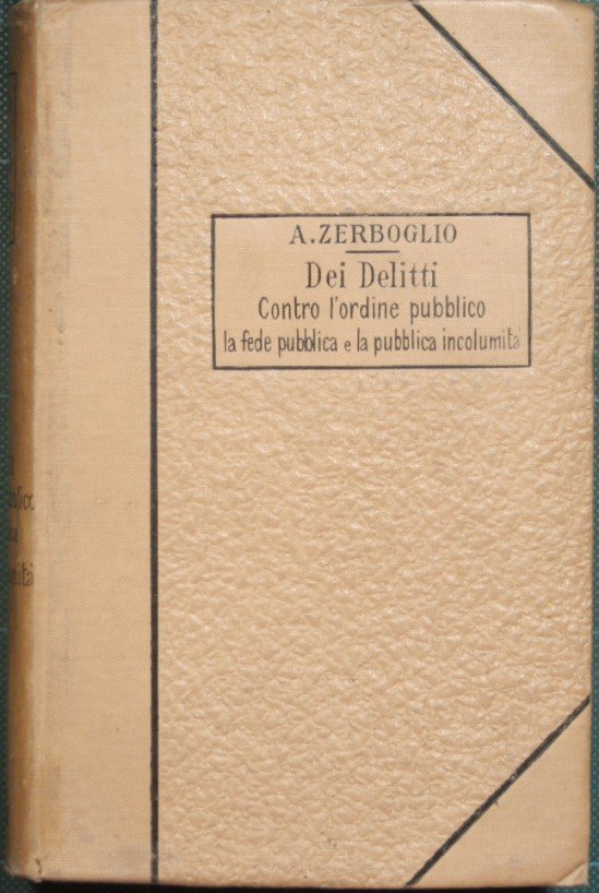 Dei delitti contro l'ordine pubblico. La fede pubblica e la pubblica incolumità - Collana Biblioteca giuridica internazionale Vol. IV - in 16° - pp.XII + 547 - Mezza tela