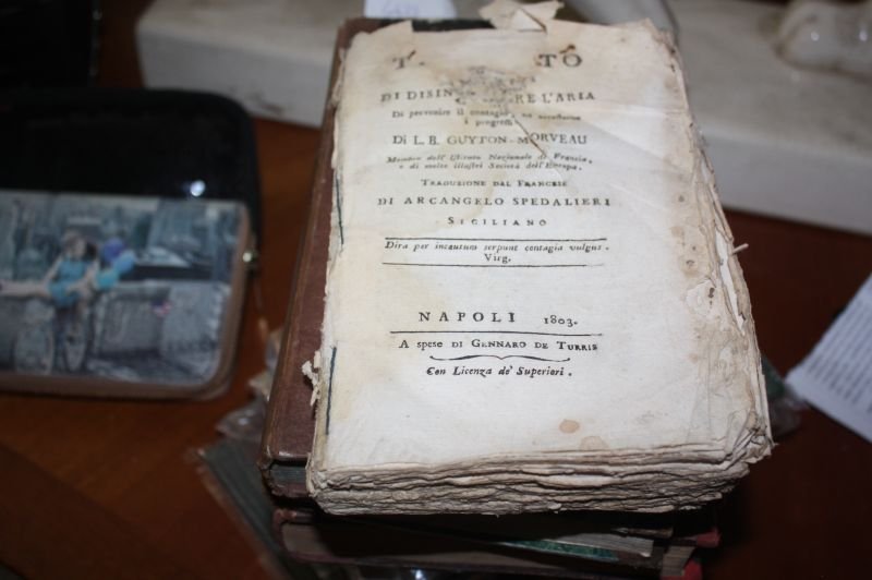 <p>L'ARIA DI L.G.B.GUYTON MOERVEAU MEMBRO DEL'ISTITUTO NAZIONALE DI FRANCIA E DI MOLTE ILLUSTRI SOCIETA' DELL'EUROPA TRADUZIONE DAL FRANCESE DI ARCANGELO SPEDALIERI SICILIANO NAPOLI 1803 A SPESE DI GENNARO DE TURRIS PAG 206 ESEMPLARE IN BARBE FORO AL CENTRO IN ALTO CHE IMPEGNA FINO ALLE PRIME ALLA SESTA PAGINA SENZA COPERTINE E CON MACCHIE EVIDENTI</p>,
