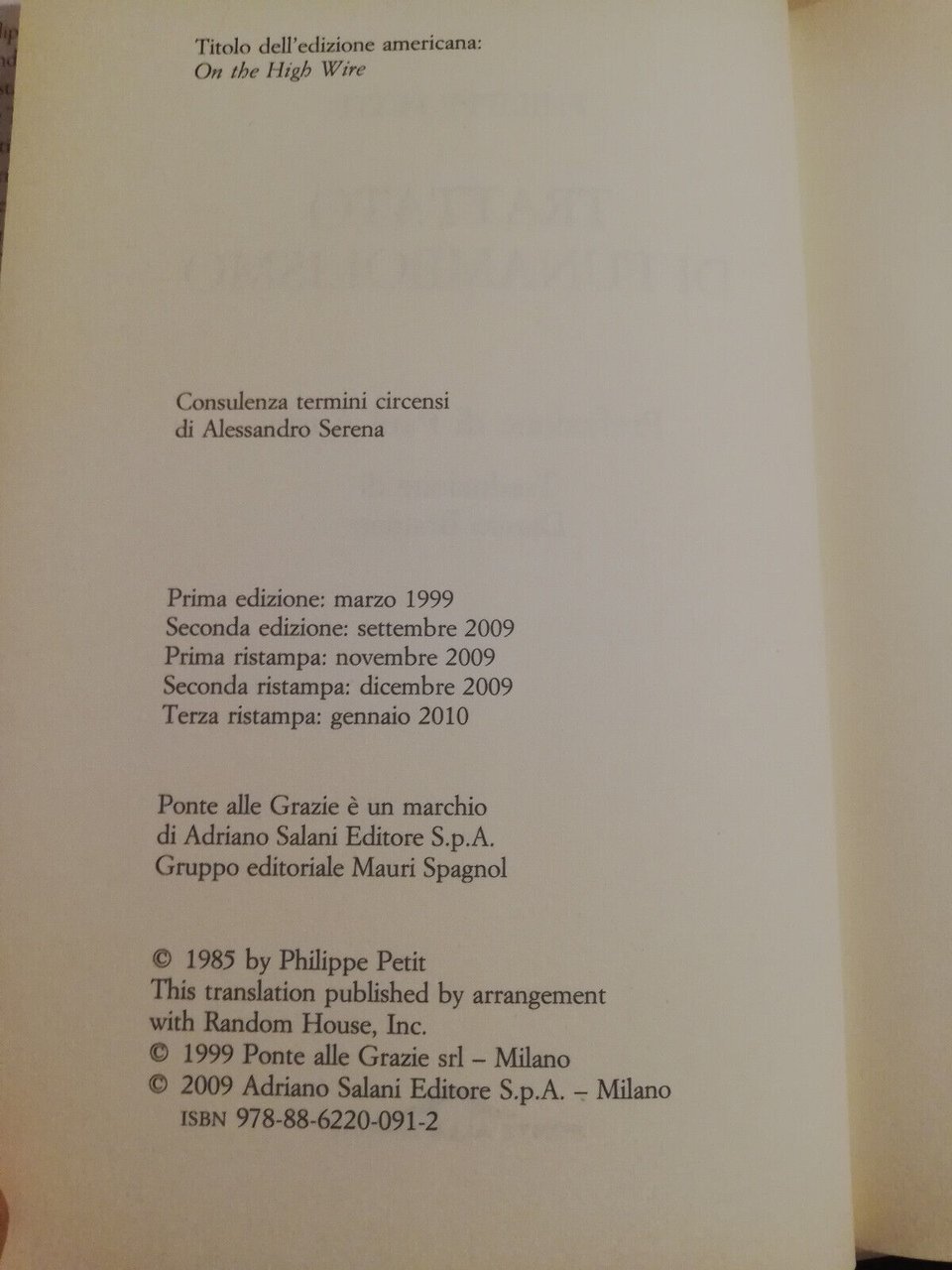 Trattato di funambolismo, Philippe Petit, 2009, Prefazione Paul Auster