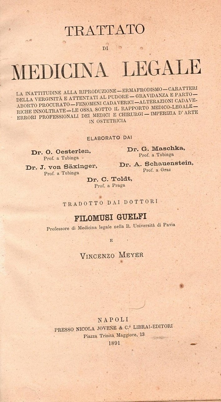 TRATTATO DI MEDICINA LEGALE 4 VOLUMI G Maschka 1889 1893 Jovene Libro antico