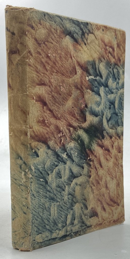 Brossura coeva rivestita in carta spugnata policroma a grandi quadri blu e rosso mattone, 12mo cm10.5x15.5, pp 153 (3); fregio xilografico sul frontespizio. Segnatura: A-F12 G6. Ben conservato, carte macchiettate da diffuse fioriture talora piuttosto marcate. Edizione popolare del fortunato trattato di pittura e preparazione dei colori apparso in Francia negli anni settanta del Secolo XVII col titolo di École de la mignature e poi come Traité de la mignature all’inizio del Secolo XVIII; entrambe le edizioni sono anonime e generalmente attribuite al pittore Claude Boutet (Barbier 1872, IV 771) o, talvolta, all’editore dell’edizione originale Christophe Ballard (Barbier 1822, III, 18132). In calce all’opera, dopo il trattato sugli inchiostri dorati e le lacche, tre pagine di catalogo editoriale dell’editore. [Barbier, Antoine-Alexandre, Dictionnaire des ouvrages anonymes et pseudonymes, edizioni 1822 e 1872].