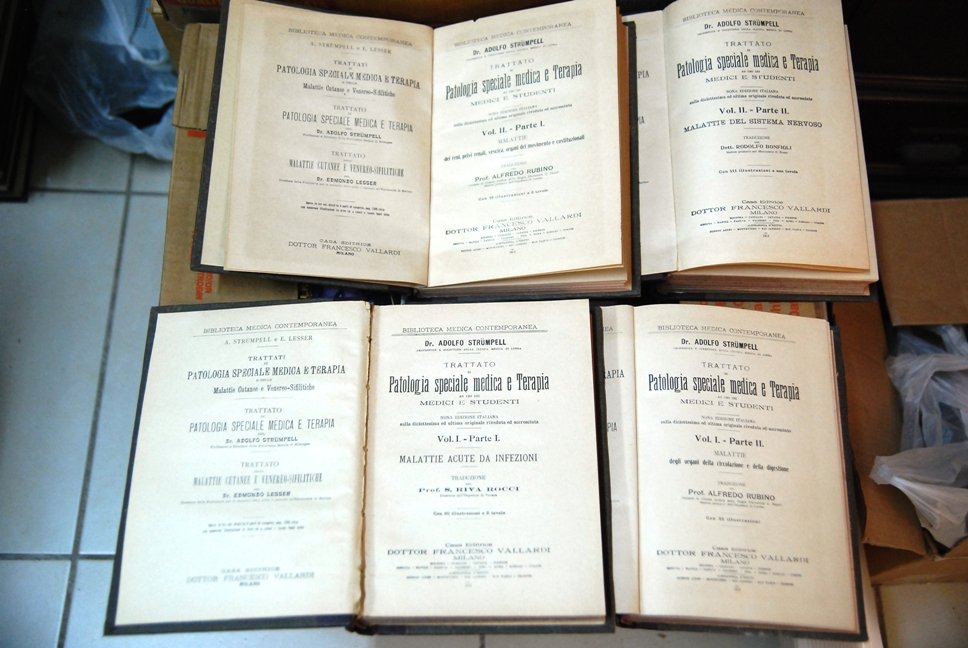 Strumpell Trattato di Patologia speciale medica e terapia, 4 volumi completi (parte 1 e parte 2). Vallardi Ottime Rilegato .