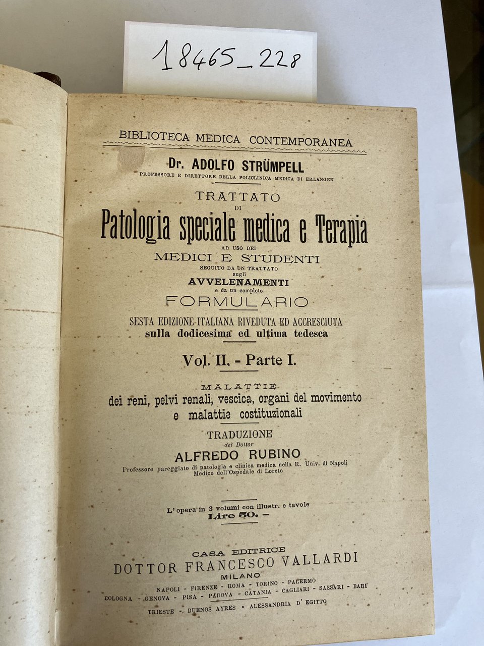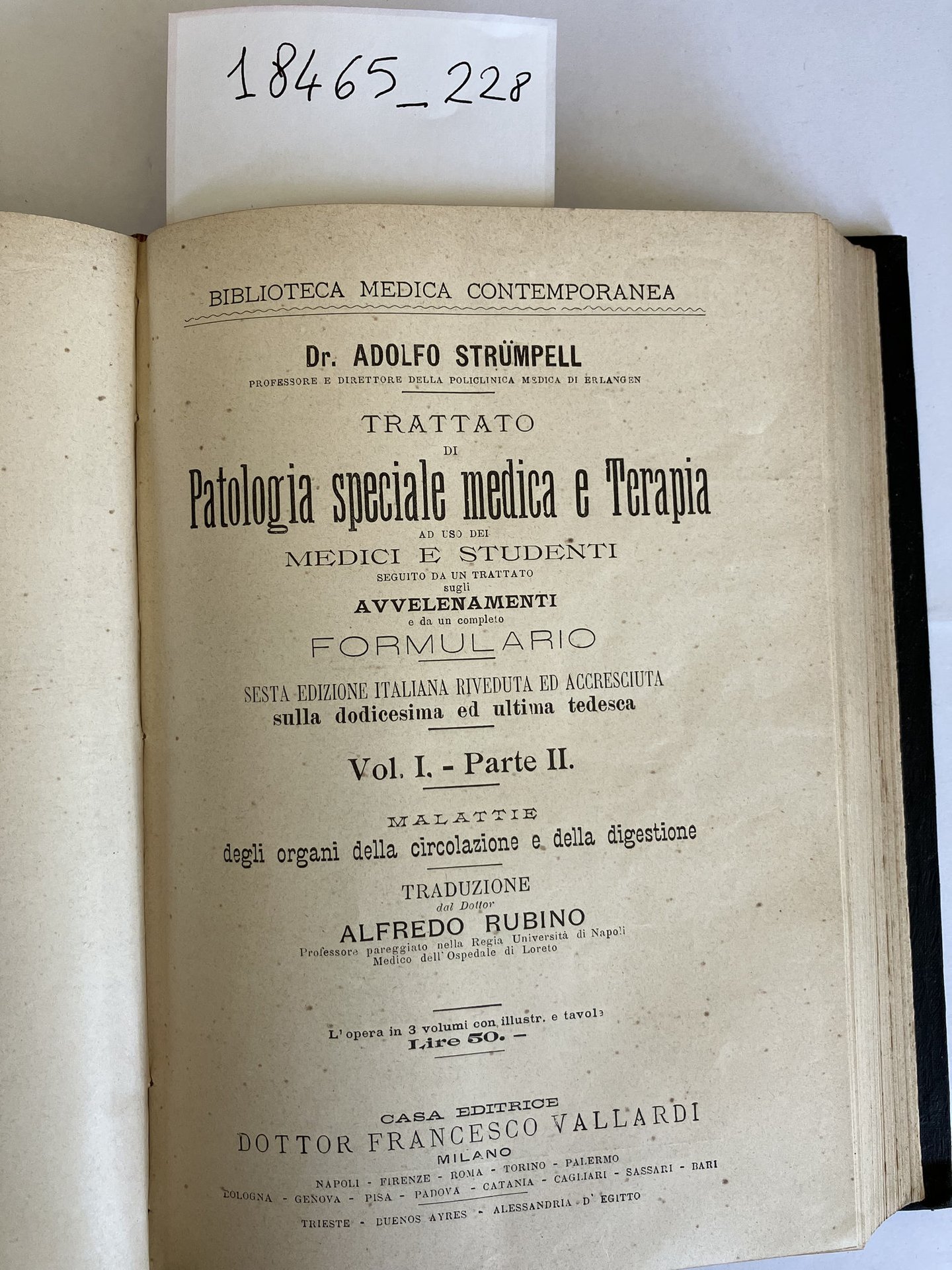 Trattato di Patologia speciale medica e Terapia ad uso dei medici e studenti. Volume primo: parte prima e seconda; Volume secondo: parte prima e seconda