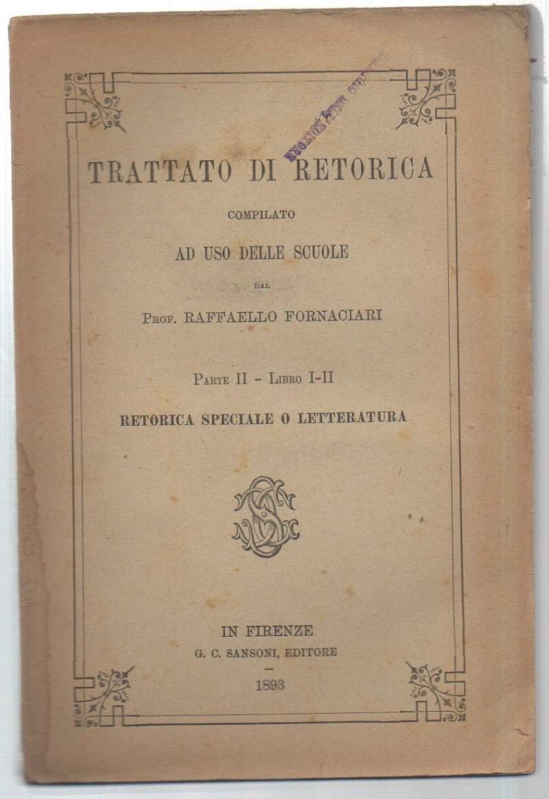 TRATTATO DI RETORICA compilato ad uso delle scuole Parte II - Libroi I - II (1893)