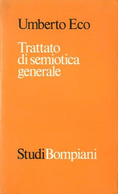 6. ed. 420 p. : ill. ; 22 x 13 cm. Otto anni dopo "La struttura assente", attraverso le esperienze delle "Forme del contenuto" e del "Segno", Umberto Eco perviene con questo Trattato a delineare una teoria globale di tutti i sistemi di significazione e i processi di comunicazione. Il disegno si articola in due grandi sezioni dialetticamente dipendenti: una teoria dei codici che, elaborando un sistema unificato e ristretto di categorie, tenta di dar ragione dell'organizzazione culturale di ogni sistema di significazione, dal linguaggio parlato ai gesti, dalle immagini agli oggetti funzionali; e una teoria della produzione segnica, che rielabora le tradizionali tipologie dei segni ribaltando il problema e conducendo una serrata e minuziosa descrizione dei vari modi in cui si producono materialmente oggetti destinati alla funzione segnica. I problemi tradizionali della linguistica, della logica dei linguaggi naturali, della retorica, dell'estetica, della filosofia del linguaggio e delle teorie della percezione vengono qui rifusi in una riorganizzazione articolata e sistemica. Brossura editoriale, coperta in cartoncino flessibile plastificato lucido di colore arancione, con titolo impresso in b/n al piatto e al dorso. Firma di appartenenza nell'anteporta, qualche leggero segno del tempo al taglio (ingiallimento) per il resto ottimo esemplare. Codice libreria 2916.