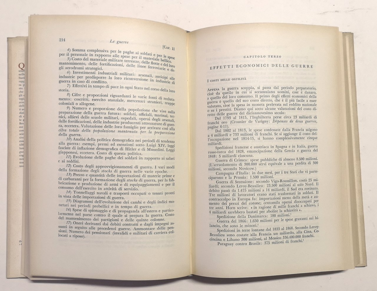 >in-8, pp. 617. Legatura edit. in tela con titoli in oro al dorso, sovracoperta. Trattato di sociologia che analizza metodi, teorie e opinioni sulla guerra; morfologia; elementi tecnici, demografici, economici, psicologici; periodicità delle guerre. Perfetto esemplare.