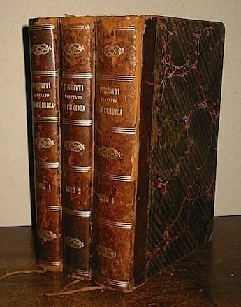 8vo (cm. 22), 3 Voll., 440, 504, 680 pp. Testo su due colonne. Legature coeve in mz. pelle con fili, fregi e titolo oro al ds. Modeste tracce d’uso ai ds. e lieve ingiallitura della carta, ma bell’esemplare. Terza edizione ampliata, riveduta e corretta dall’Autore.