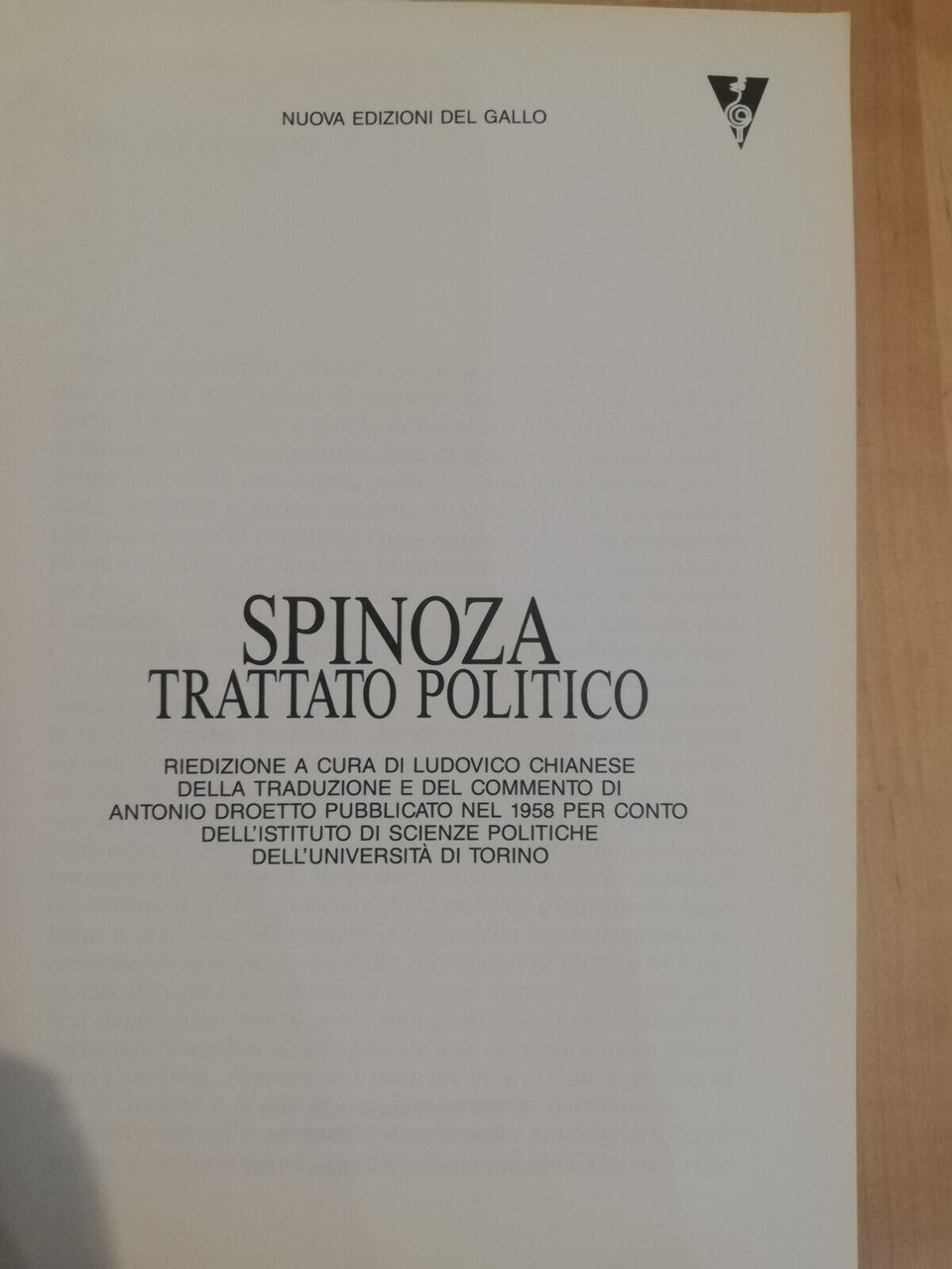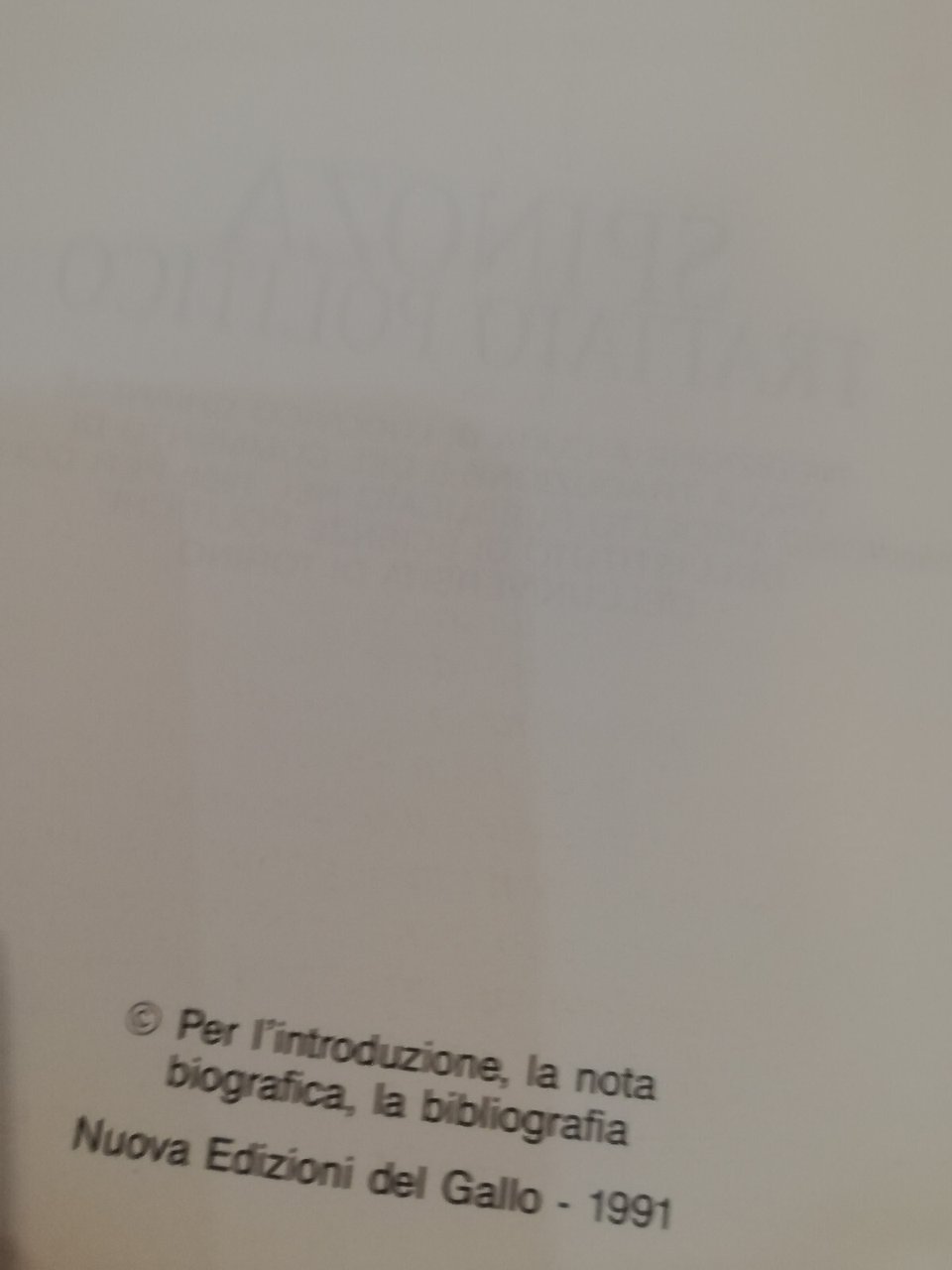Trattato politico, Spinoza, Ludovico Chianese (a cura), Edizione del gallo, 1991