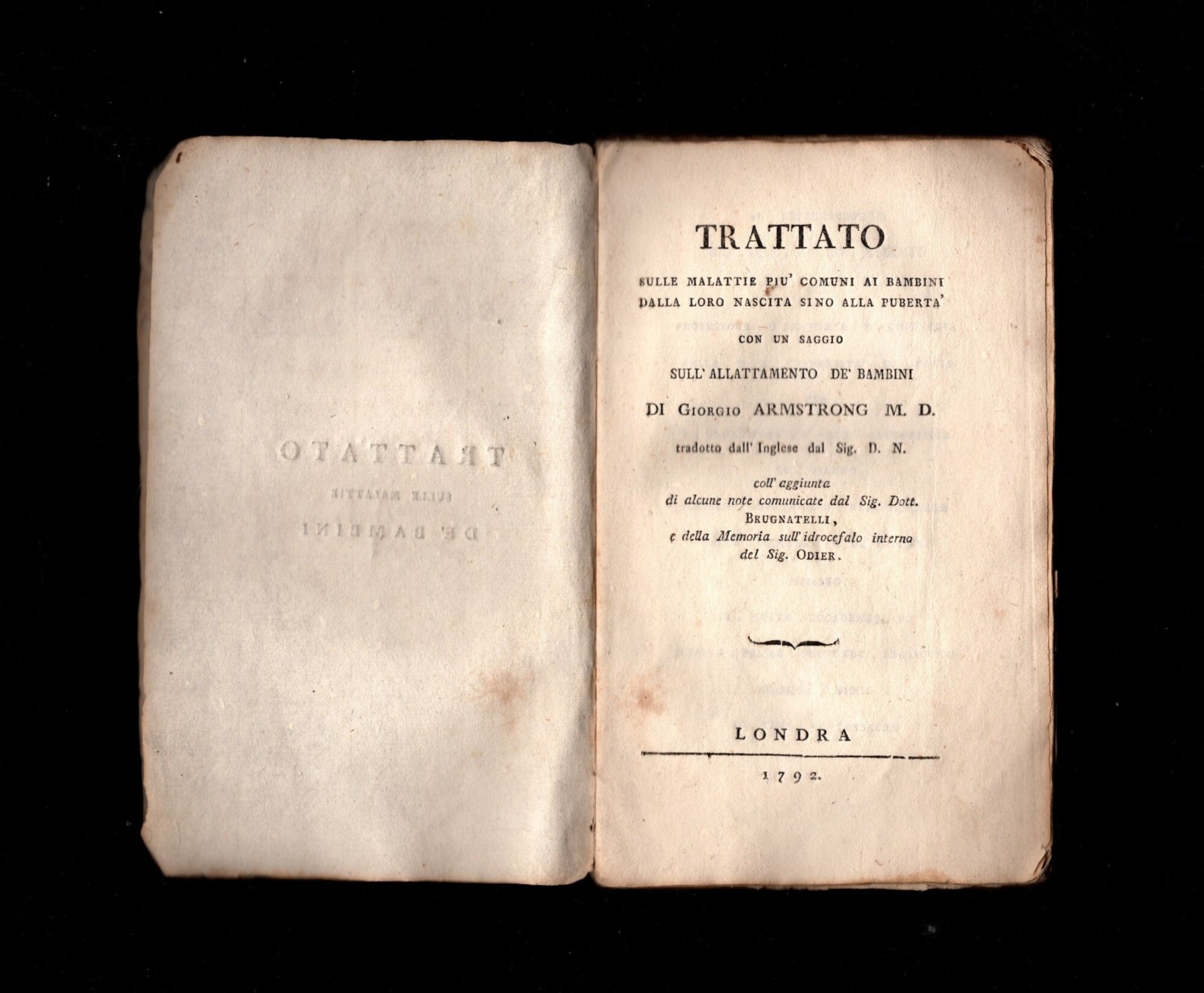 di Giorgio Armstrong M.D. tradotto dall'Inglese dal Sig. D.N. coll'aggiunta di alcune note comunicate dal Sig. Dott. Brugnatelli e della Memoria sull'idrocefalo interno del Sig. Odier