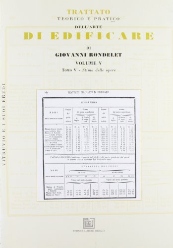 Rondelet , Jean Trattato teorico e pratico dell'arte di edificare: 5. Roma, Editrice librerie Dedalo 2005, ill. 30 cm 295 p., 4 c. di tav. (38364)