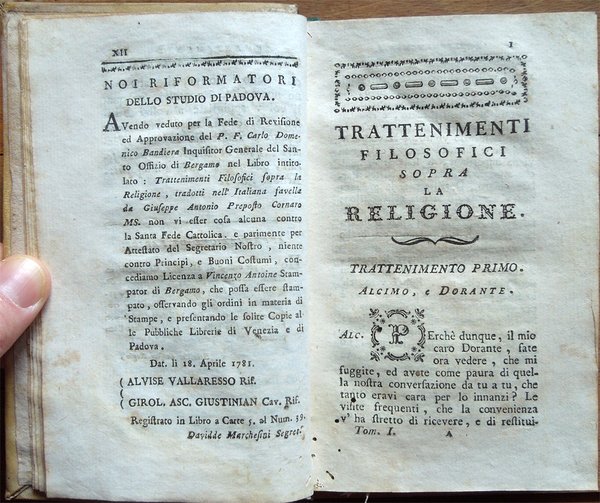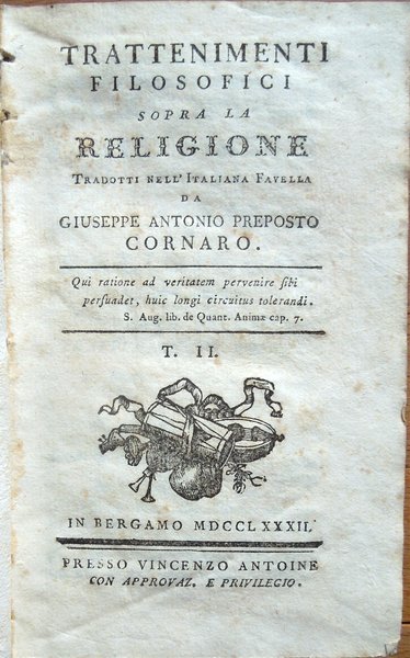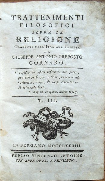 Trattenimenti filosofici sopra la religione tradotti nell'italiana favella da Giuseppe Antonio Preposto Cornaro