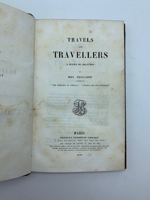 In 8, cm 13,5 x 22, pp. (4) + 306. Mezza pelle con fregi e tassello al dorso. Ex libris al contropiatto. Edizione dello stesso anno della prima di questa serie di racconti di viaggio opera della Trollope, prolifica autrice che ebbe grande successo e che si sostenne in vita grazie al suo lavoro di scrittrice