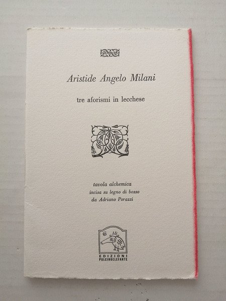 formato 19,5X18. Plaquette. Tiratura in 21 esemplari. EDIZIONE N.2402 . Con una tavola alchemica incisa in legno di bosso da A. Porazzi. Perfetto stato