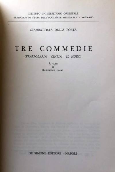 Soggetti: Commedie, Teatro napoletano, Drammaturgia, Letteratura italiana, Classici, Cinquecento, Testi teatrali, Commedia, Opere, Giovan Battista Della Porta, Accademia dei Segreti, Filosofi italiani del XVII, Alchimisti, Academia secretorum naturae, Rinascimento, Tommaso Campanella, Paolo Sarpi, Giordano Bruno, Lezioni, Seminari, Bibliografia, Riferimento, Atti, Favole, Critica letteraria, Note, Appunti, Libri Vintage, Fuori catalogo, Università, Lettere, Stregoneria, Inquisizione, De arte componendi comoedias, Comedies, Neapolitan Theater, Dramaturgy, Italian literature, Classics, 16th century, Theatrical texts, Comedy, Works, Academy of Secrets, Italian philosophers of the 17th century, Alchemists, Renaissance, Lessons, Seminars, Bibliography, Reference, Acts, Fables, Literary criticism, Notes, Books out of print, Universities, Letters, Witchcraft, Inquisition