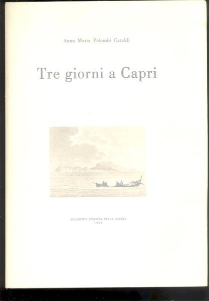 IN 4°, pp.39, NOTE. COPERTINA EDITORIALE ILLUSTRATA CON TITOLO + VELINA DI PROTEZIONE. FRONTESPIZIO FIGURATO CON VEDUTINA DI CAPRI, CHE E' LA STESSA DELLA COPERTINA. 4 FIGURE in b/n.NEL TESTO e 4 VEDUTE a col.+ v.r.f.t. PRESENTAZIONE DI MASSIMO PISANI, DELEGATO DI CAPRI DELLA CUCINA ITALIANA. VOLUME PUBBLICATO IN OCCASIONE DELL'UNDICESIMO CONVEGNO INTERNAZIONALE SULLA CIVILTA' DELLA TAVOLA<BR>A CURA DEI DELEGATI DELL'ACCADEMIA ITALIANA DELLA CUCINA. - CAPRI, 12 - 14 OTTOBRE<BR>1989. VOLUME OFFERTO DAL CIS DI NOLA, IMPRESSO DALL'ARTE TIPOGRAFICA DI ANGELO ROSSI SU CARTA ACQUARELLO DELLE CARTIERE FEDRIGONI IN SOLI 533 ESEMPLARI. NS.<BR>ESEMPLARE, n° 178. PERFETTA CONSERVAZIONE. ID 4949