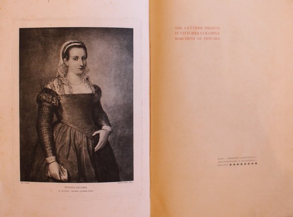 Ritratto di Vittoria Colonna in fotoincisione all'antiporta.