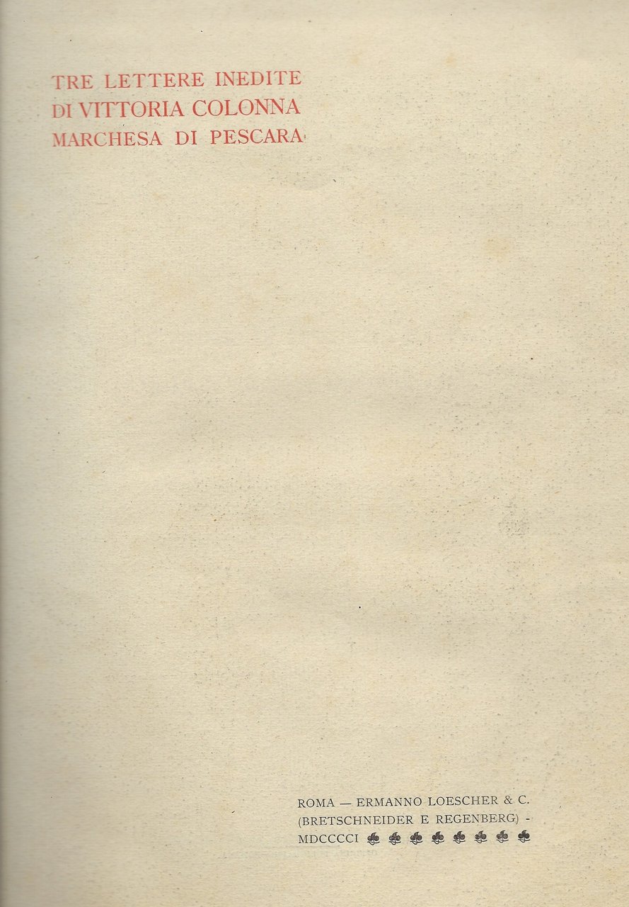 Tre lettere inedite di Vittoria Colonna Marchesa di Pescara