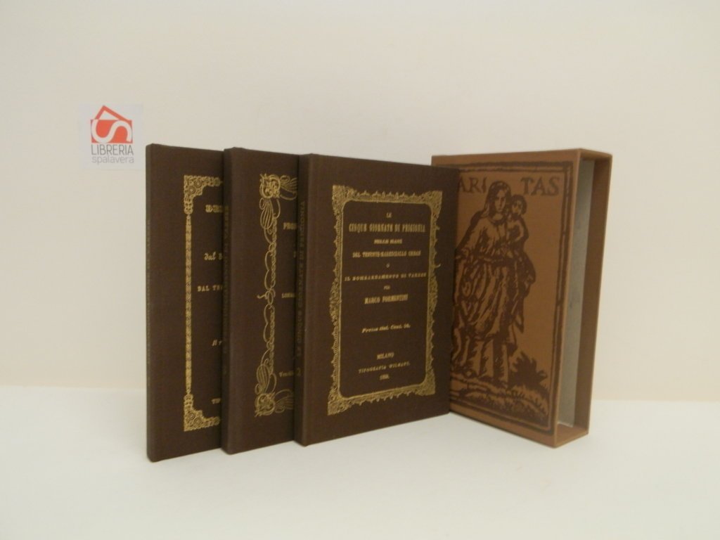 3 volumi, 16^, pp. 48; 80; 16. Rilegatura editoriale in tela, titolo in oro incirniciato al piatto, cofanetto editoriale illustrato ai piatto. Le opere in edizione anastatica sono: Le cinque giornate di prigionia nelle mani del tenente-maresciallo Urban e il bombardamento di Varese per Marco Formentini (Milano, 1859). Il pronunciamento di Varese e il Generale Urban racconto di un lombardo prigioniero degli austriaci, (Varese 1859). Dell'occupazione di Varese dal 31 maggio al 5 giugno 1859 fatta dal tenente maresciallo generale Urban. (Varese, 1960 circa). Ex libris privato applicato al contropiatto di ogni volume, esemplare perfetto a cura dei Musei Civici di Varese. *** TUTTI I NOSTRI LIBRI SONO VISIBILI PREVIO CONTATTO MAIL O TELEFONO NELLA NUOVA SEDE DI MILANO: LIBRERIA COSMOPOLIS, VIA JOMMELLI, 22. ***