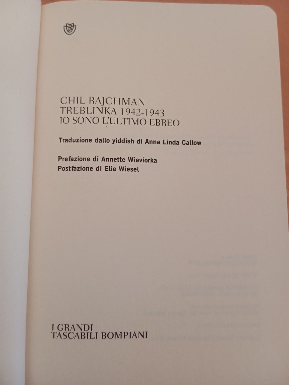 Treblinka 1942 - 1943, Io sono l'ultimo ebreo, Chil Rajchman, Bompiani, 2014