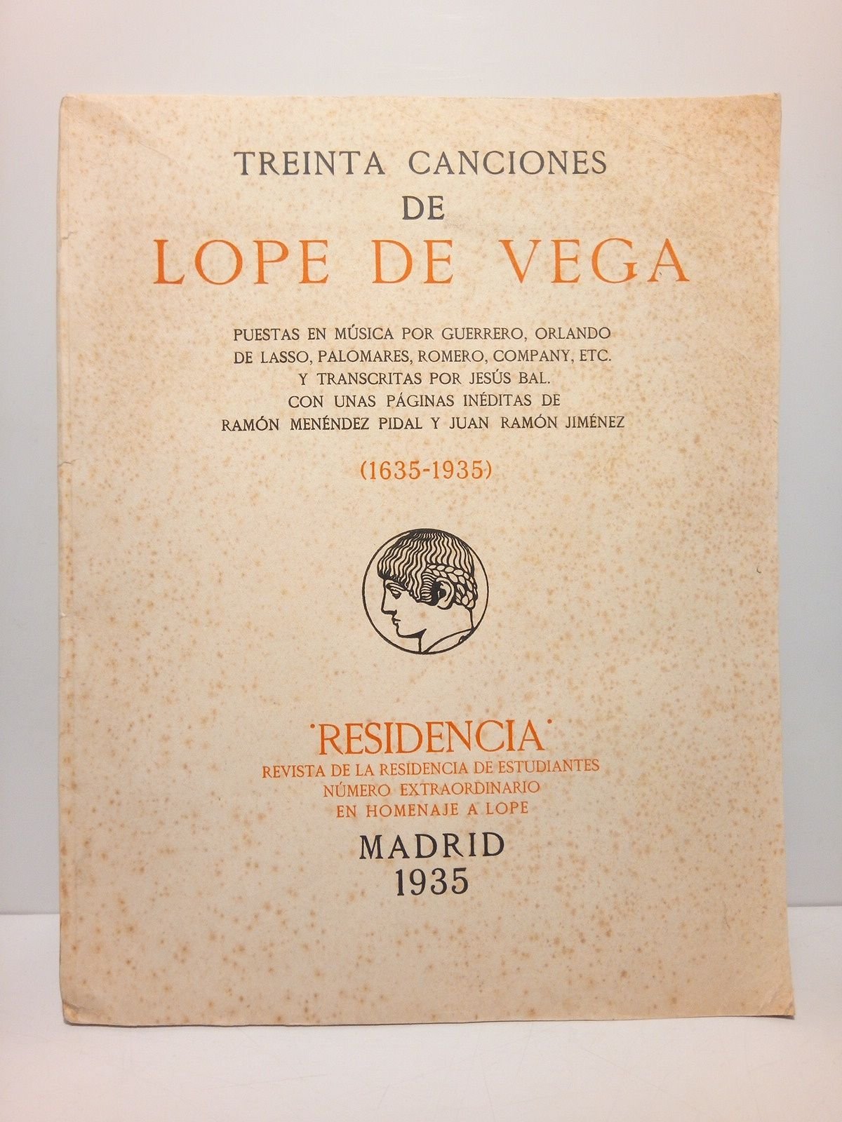 Treinta canciones de Lope de Vega. (1635-1935) / Puestas en música por GUERRERO, ORLANDO DE LASSO, PALOMARES, ROMERO, COMPANY, etc. y transcritas por JESUS BAL. Con unas páginas inéditas de RAMON MENENDEZ PIDAL Y JUAN RAMON JIMENEZ