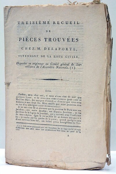 Treizième recueil de pièces trouvées chez M. Delaporte, intendant de la Liste Civile, déposées en originaux au Comité général de Surveillance de l'Assemblée Nationale.