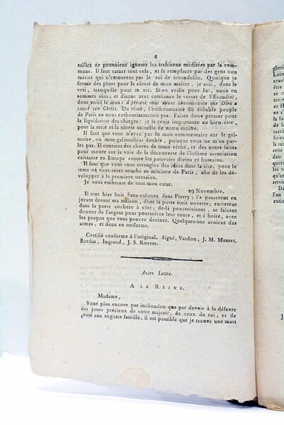 28 pages. (21x13 Cm). Broché. Non rogné. Guillotiné en 1792, Delaporte fut, lors de la révolution, le grand distributeur des fonds secrets au service de la monarchie. Ces pièces servirent au procès du Roi.