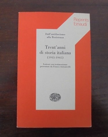 TRENT`ANNI DI STORIA ITALIANA. (1915-1945) Lezioni con testimonianze presentate da Franco Antonicelli. Dall`antifascismo alla Resistenza.