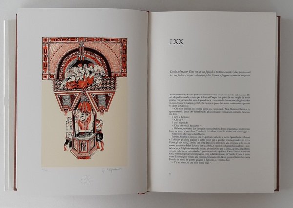 (mm.343x245), pagg.153-cc.nn3. Legatura rigida editoriale in mezza pelle con titolo in oro al piatto anteriore ed al dorso; plastica protettiva; cofanetto cartonato. Realizzato nel mese di ottobre 1985, illustrato dalle 25 serigrafie di Guido Giordano. Di questa pubblicazione sono stati impressi 333 esemplari in cifra araba, più 33 esemplari in cifra romana, più 3 esemplari riservati agli editori. Tutte le opere grafiche, ed il volume sono state firmate dall’artista. Questo esemplare porta il numero 59/333. Ottime condizioni, allo stato di nuovo, mai sfogliato.