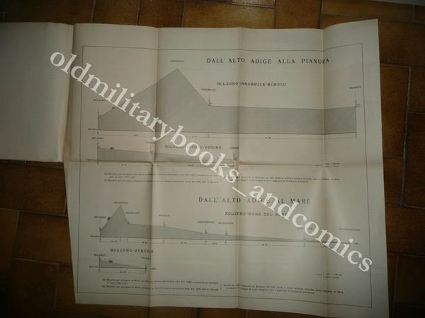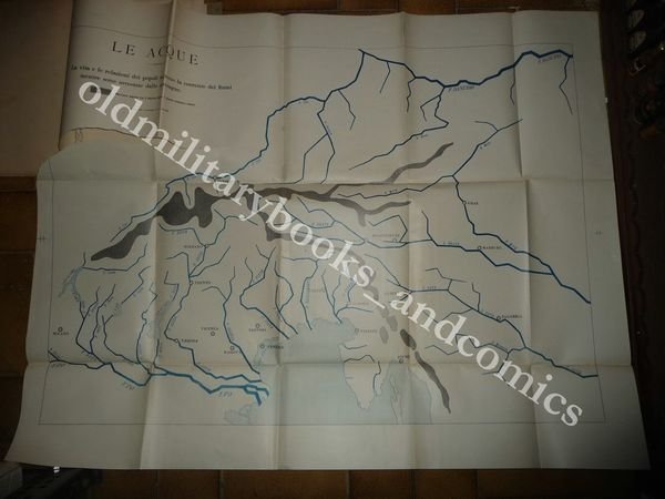 TITOLO: TRENTINO VENEZIA GIULIA E DALMAZIA CONSIDERAZIONI MILITARI POLITICO ECONOMICHE SUI CONFINI ITALICI DESCRIZIONE: Senza indicazione della stamperia 1918, br. ed. pp. 14 con 7 grandi schizzi cartografici molte volte ripiegati in fine, alcuni dei quali in litografia a colori in 4°. L'opera tratta le strade, le acque, la vita della gente, le ferrovie e le comunicazioni naturali. CONDIZIONI: Discrete/Buone, dorso con danni ed 1 carta strappata. PESO / WEIGHT: 392 gr. without package