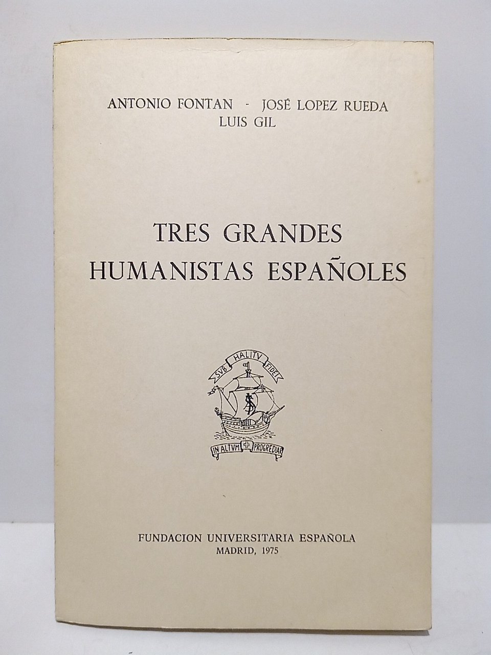 Tres grandes humanistas españoles. (Conferencias pronunciadas en la Fundación Universitaria Española los días 28 y 30 de mayo, y 6 de junio de 1975): Juan Luis Vives, la antigüedad como sabiduria / Joseph Antonio González de Salas, un filólogo clásico amigo de Quevedo / El Dean Martí o la esperanza fallida / [Los 3 conferenciantes] presentados con unas palabras de Pedro Sáinz Rodríguez