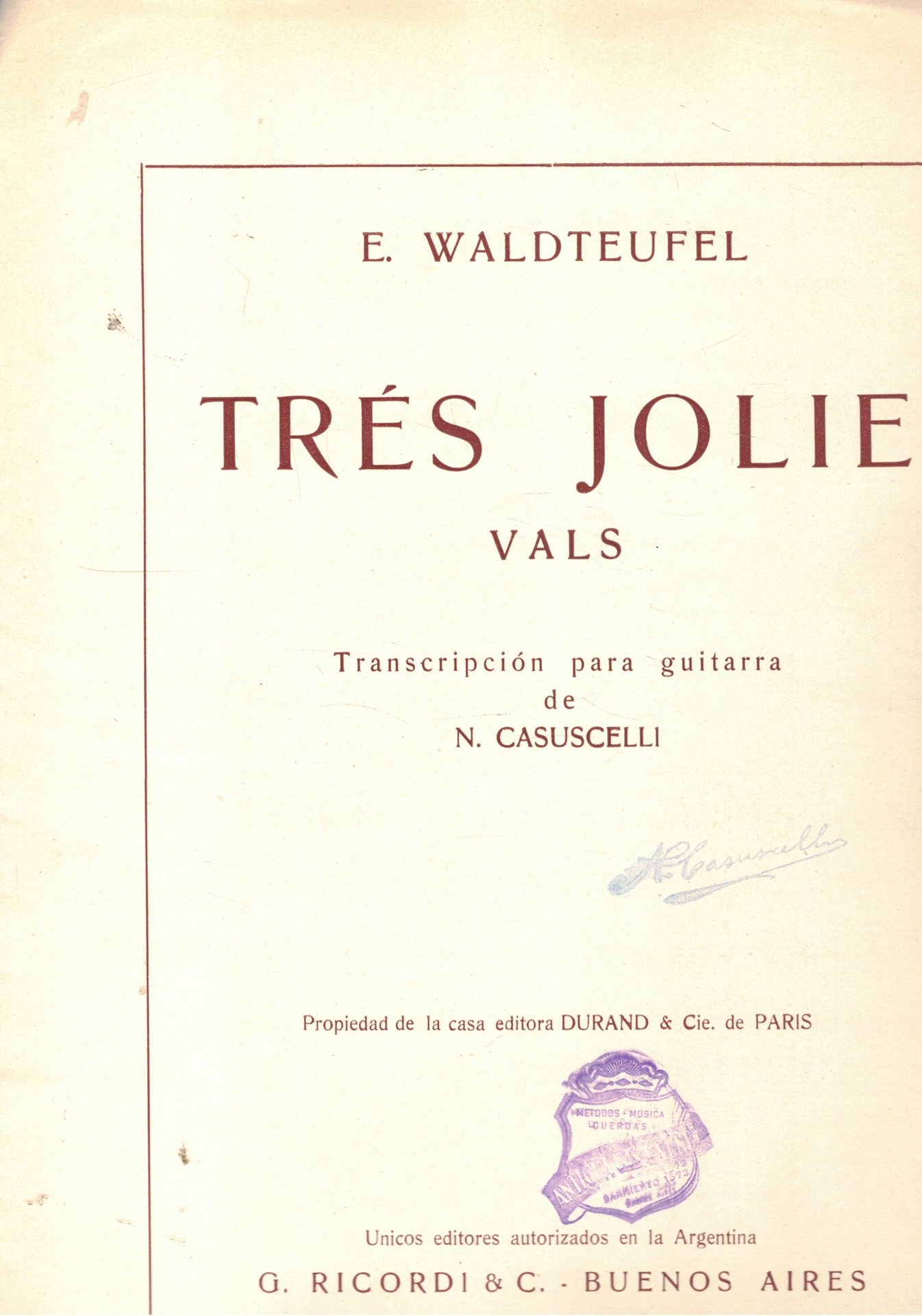 Trés Jolie vals. Transcription para guitarrade N. Casuscelli.