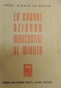 Nicola Tridente, Le grandi aziende mercantili al minuto. Aspetti di organizzazione gestione e controllo, Casa Editrice dott. L. Macrì, Città di Castello e Bari 1945, pp. 359, cm 23, br. ed. Firma d’appartenenza alla prima pagina di guardia. Tracce d’uso, con strappetti senza mancanze al dorso e sottolineature e annotazioni manoscritte a lapis e a pastello, ma nel complesso ancora buona copia. Raro.