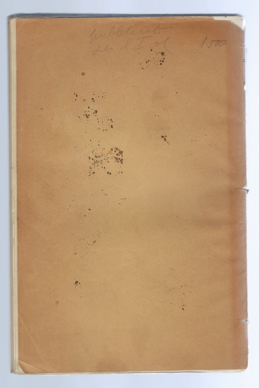 Brossura editoriale che presenta diversi difetti, come strappi, pezzettini mancanti, pieghe e segni vari.