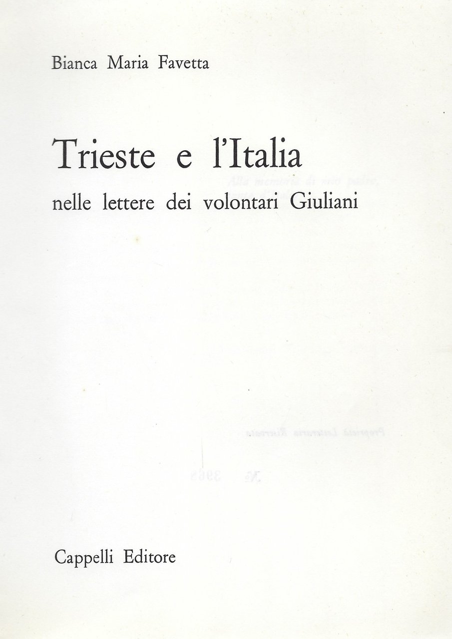 Contiene il documento sull'ardente amore di Trieste per l'Italia espresso da coloro che vollero la guerra e la poterono combattere e nella corrispondenza