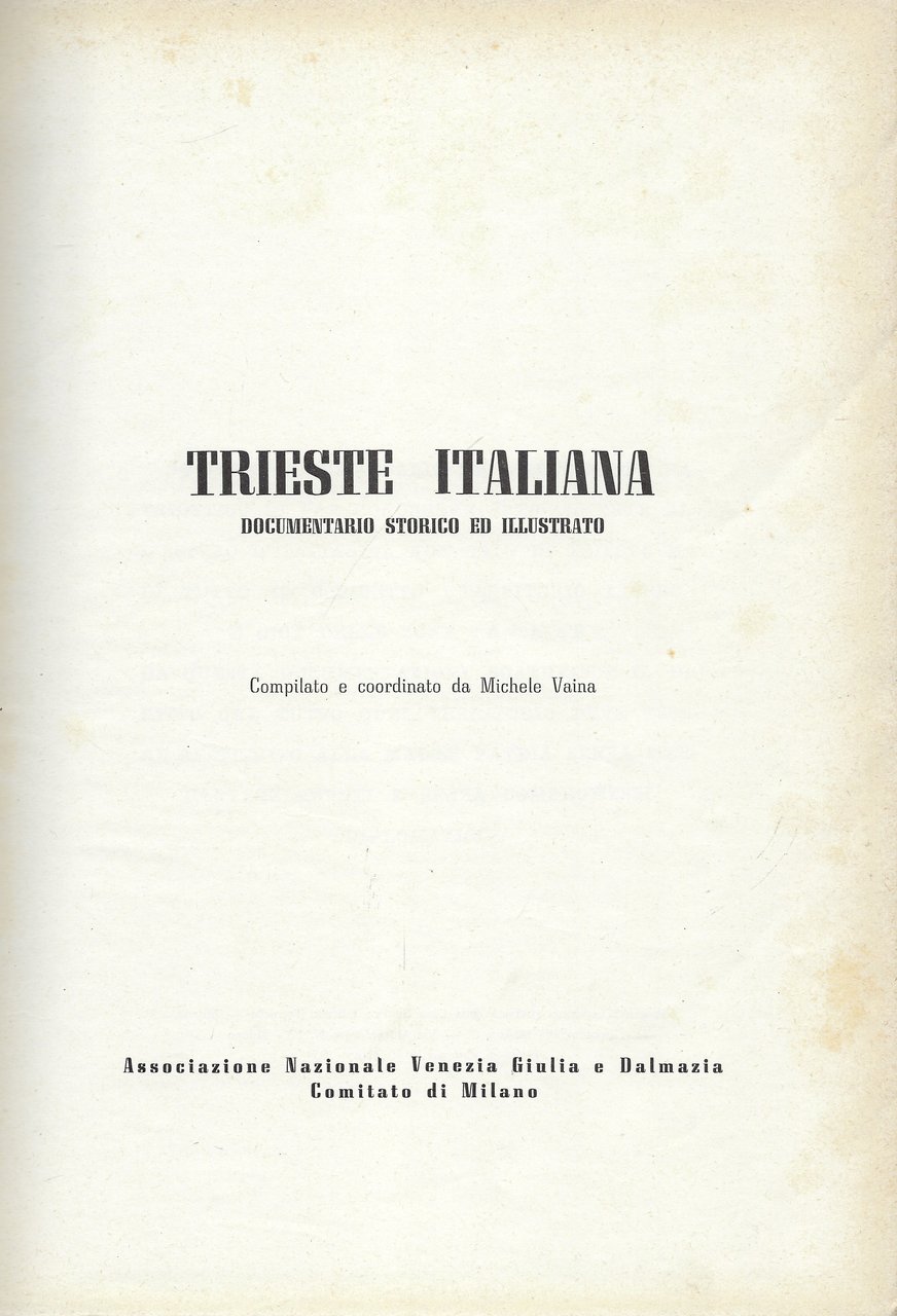 Trieste italiana. Documentario Storico ed Illustrato.