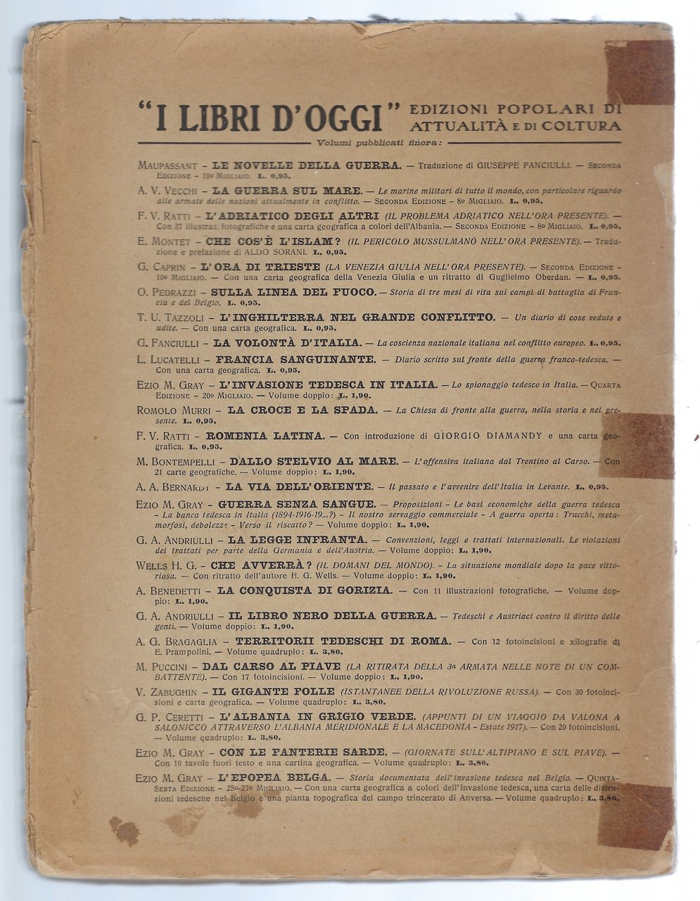 Brossura editoriale, volume slegato con copertina rovinata.