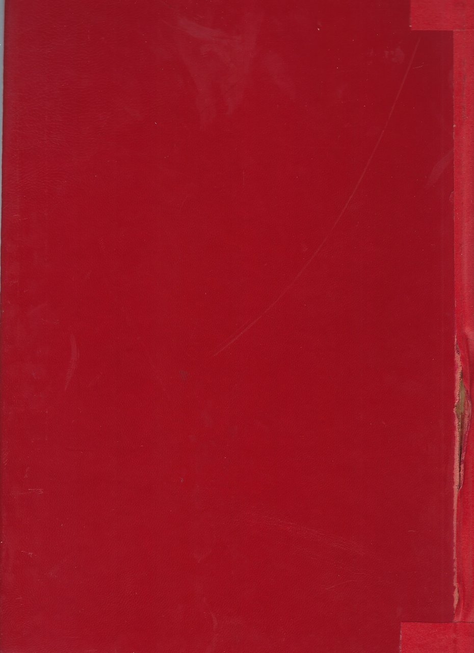 Cartonato in similpelle rosso con titoli dorati. Presenta un difetto al dorso, in quanto risulta parzialmente staccato e a cui è stato applicato del nastro adesivo.