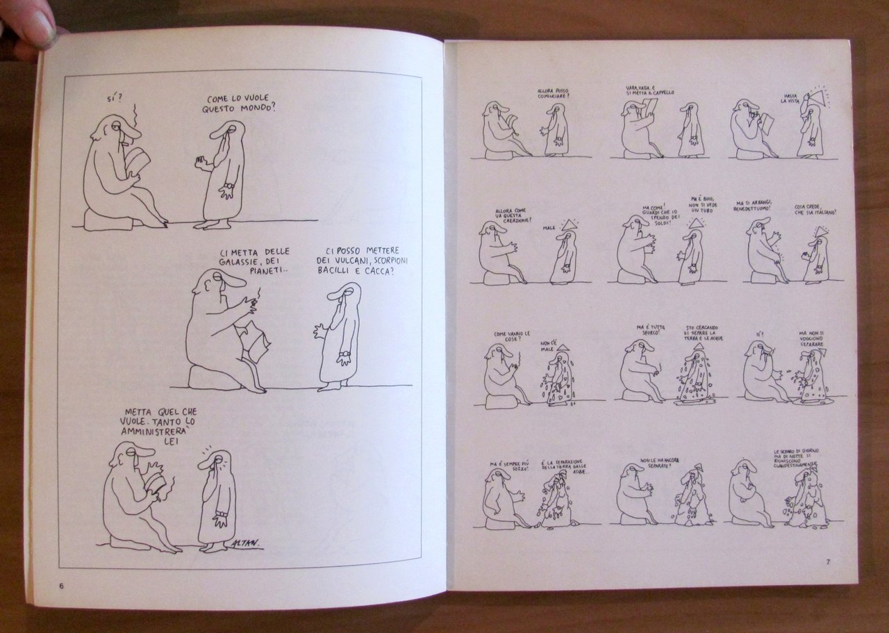 Illustrazioni a fumetti in b/n in tutte le pagine di Altan. Ed. Milano Libri - Milano, I edizione 1977. Brossura editoriale. 20,5x27; pp.94. Ottimo stato. , Ottimo (Fine)