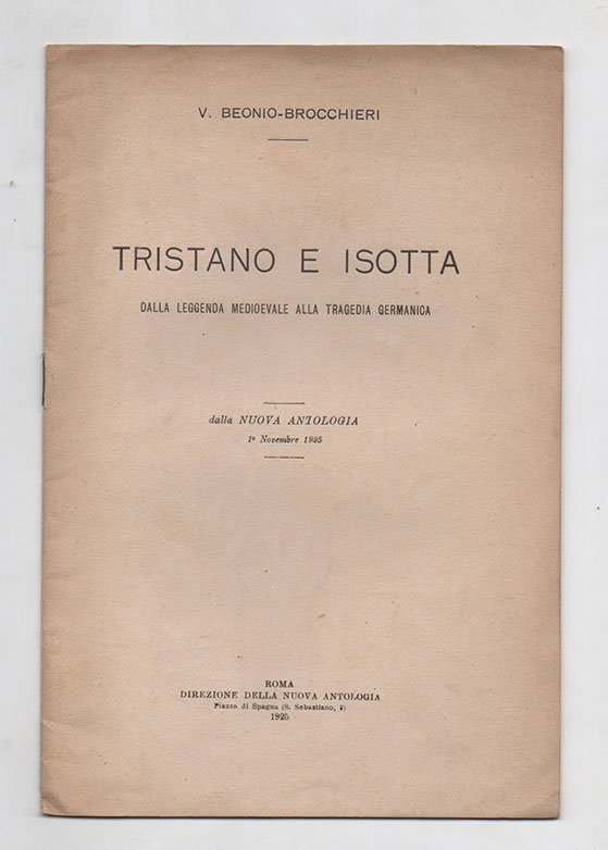 LIBROPrima edizione.Ottimo esemplare.Rarissimo estratto dalla «Nuova Antologia» del 1 Novembre 1925: 2 sole copie nel catalogo SBN. Studio sull’evoluzione di Tristano e Isotta dalle origini medievali al «Tristan und Isolde» di Goffredo di Strasburgo e alla celeberrima opera di Wagner.
