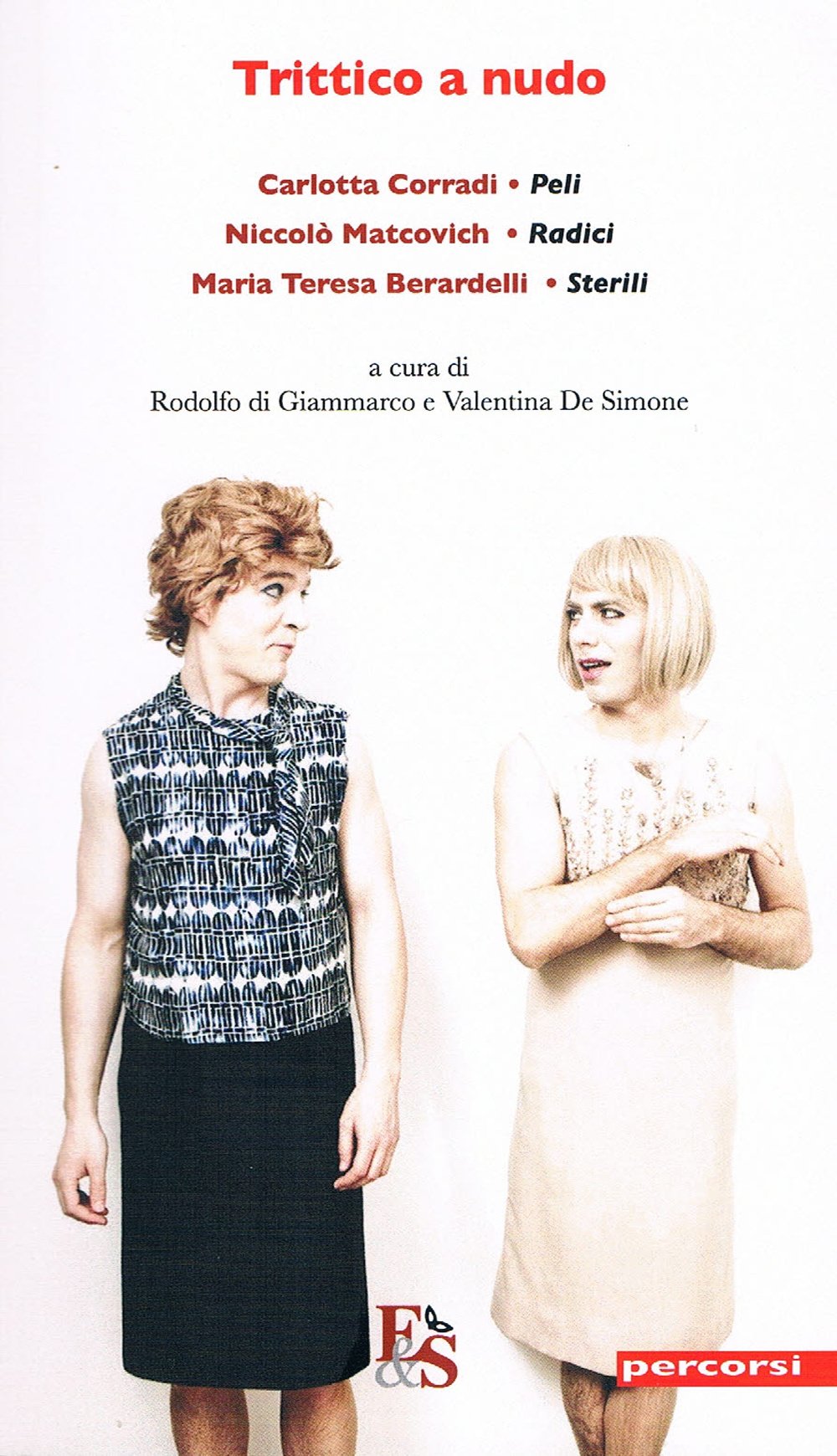Tre copioni somatici ("Peli", "Radici", "Sterili"), tre storie inedite, tre giovani autori, tre frequenze sintonizzate sull'umano. Questa breve antologia di testi teatrali azzarda un'indagine anatomica sulla diversità delle scritture, uno screening sulle tipologie e sintomatologie del dire, quale epidermide del contemporaneo. Parole come tendini tesi, come muscoli scattanti, come organi febbricitanti, come cavità addominali, come pugni chiusi, come occhi insostenibili. Tre corpi drammaturgici, con messa a fuoco del sistema nervoso periferico delle relative creatività. Scritture per la scena di oggi, con l'intimità di oggi, con la parsimonia di oggi.