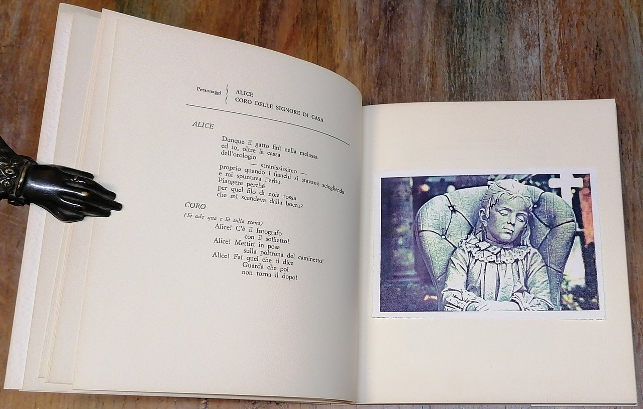 (Fotografia contemporanea - Libro in xerotipie - Monumenti funebri della Certosa di Bologna) Cm 23 x 20, legatura editoriale in brossura, sovraccoperta in cartoncino martellato color avorio con titoli in marrone al dorso ed al piatto anteriore, pp. 88 non numerate stampate su carta forte, con applicate 34 immagini fotografiche di Claudio Crupi riprodotte con copiatrice a colori Xerox 6500 ed accompagnate da testi poetici di Piero Forosetti. Presentazione di di Ando Gilardi. Opera ideata da Carlo Valentini, tiratura di 200 esemplari numerati e firmati dagli autori (copia N. 89), stampati dalla Tipografia Calducci di Firenze. Ottimo stato di conservazione.