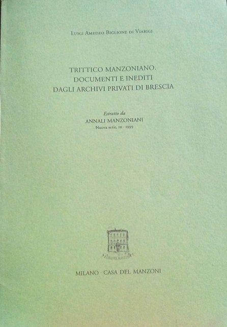 TRITTICO MANZONIANO. DOCUMENTI E INEDITI DAGLI ARCHIVI PRIVATI DI BRESCIA - ESTRATTO DA "ANNALI MANZONIANI", NUOVA SERIE, III, 1999